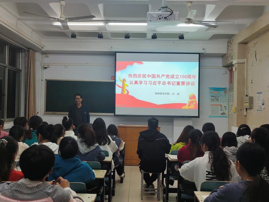 本网讯(特约记者/赵尊 学生记者/张文娜)为持续推进党史学习教育走深走实,引导广大学生切实做到学党史、悟思想,10月11日,教师教育学院党委书记冯建为学院第48期100余名入党积极分子讲授学习“七一”讲话精神专题党课。