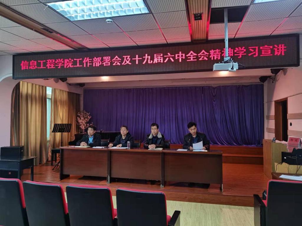 本网讯(特约记者/张露学生记者/李林溪)11月18日下午,信息工程学院召开专题会议,传达学习党的十九届六中全会精神,部署学习宣传贯彻落实工作。信息工程学院领导班子出席会议,全体教职工参加会议。