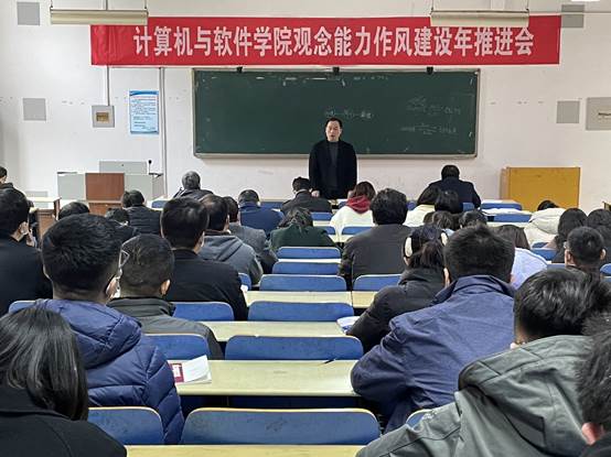 本网讯(特约记者/曾智)3月1日下午,计算机与软件学院召开“观念能力作风建设年”活动推进会,学院领导班子及全体教职员工参加会议。
