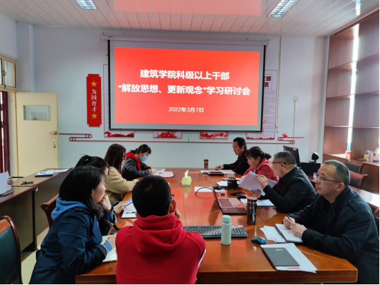 本网讯 3月7日下午,建筑学院召开“解放思想、更新观念”学习研讨会,学院全体科级以上干部参加会议。