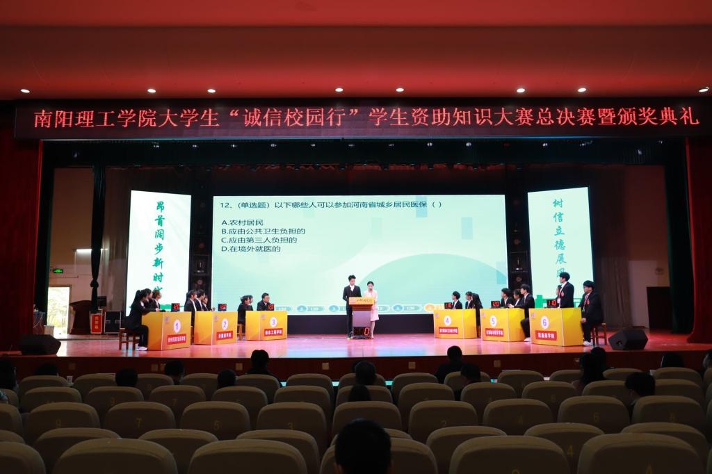 本网讯(特约记者/张卓娅)3月23日,我校在毕业大厅举办以“昂首阔步新时代,树信立德展风采”为主题的大学生“诚信校园行”学生资助知识大赛总决赛暨颁奖典礼。学生处、心理健康教育中心、校团委、范蠡商学院相关负责人出席活动。
