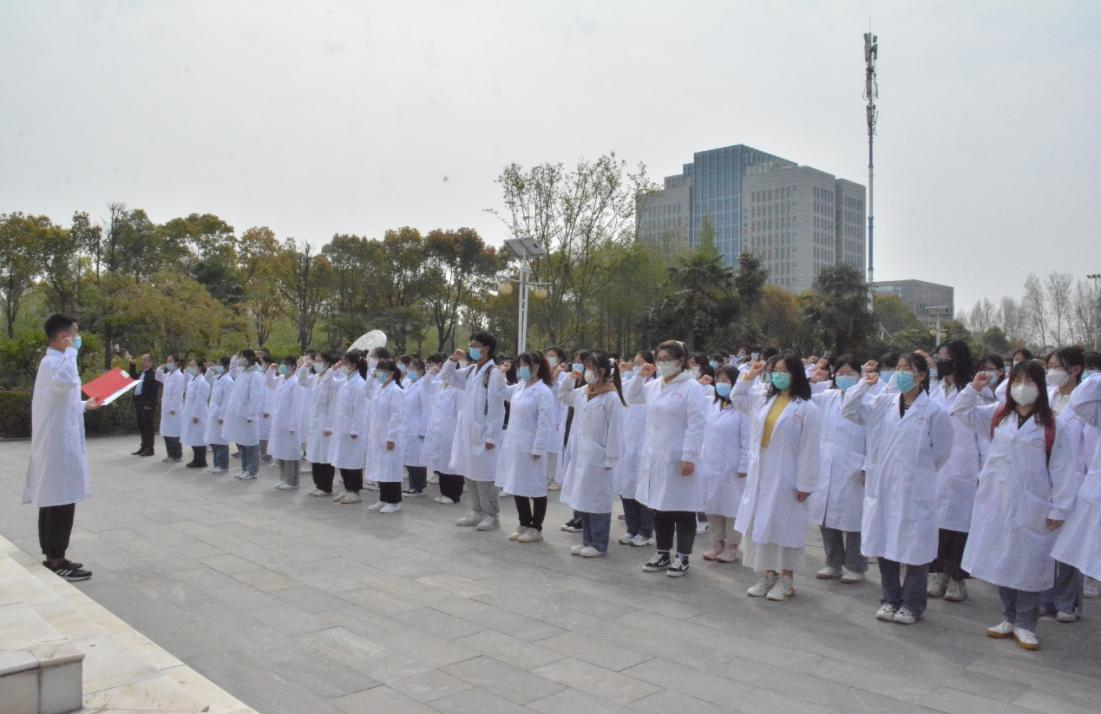学生代表发言并带领全体师生宣读医学生誓词。全体师生依次在签名墙上留下名字,表达追思之情。(校对/刘庚 审核/鲁静薇)