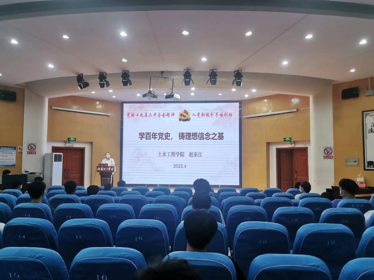 随后赵东江讲授“学百年党史,铸理想信念之基”主题党课,从学习党的十九届六中全会精神、筑牢理想信念根基和奋斗大学梦三个方面进行讲述,希望同学们不断增强政治素养,用习近平新时代中国特色社会主义思想武装自己,砥砺思想,敢于担当,努力成长为德智体美劳全面发展的中国特色社会主义事业的建设者和接班人。