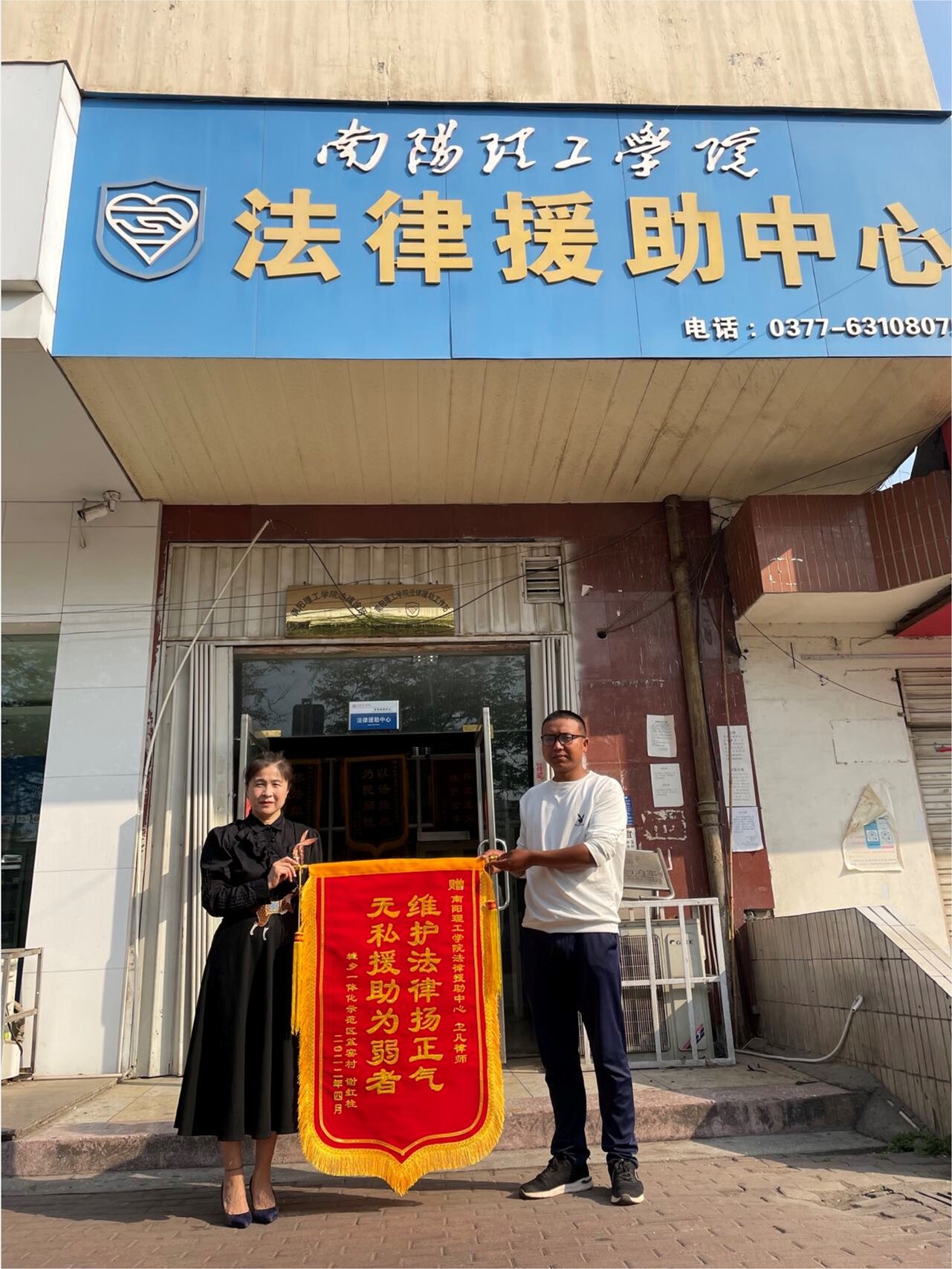 本网讯(特约记者/王冷)近日,城乡一体化盆窑村居民谢红柱送来一面内容为“维护法律扬正气,无私援助为弱者”的锦旗,对南阳理工学院法律援助中心和卫凡律师提供的法律援助表示由衷的感谢。