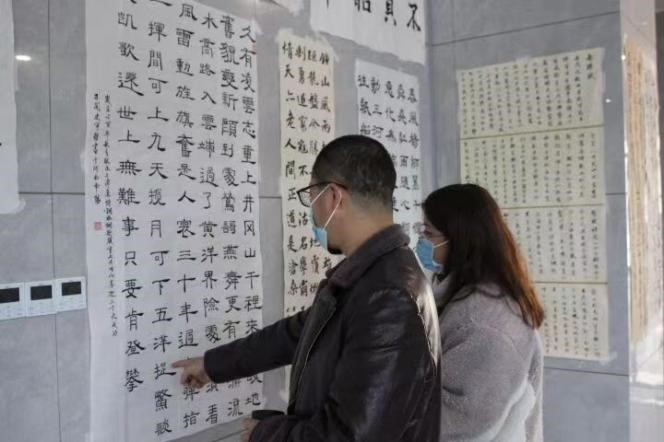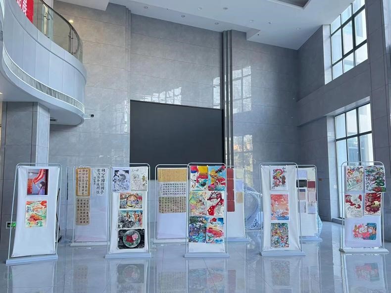 本网讯(特约记者/田真 学生记者/黄厦茹)11月24日,我校“献礼二十大 青春献祖国”书画摄影作品展在实训楼1楼大厅举办。