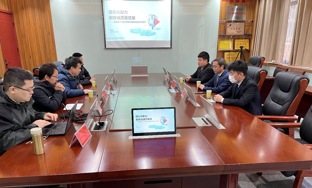 师少锋介绍了牧原食品股份有限公司网络安全与信息化建设基本情况及下一步建设需求,详细了解南阳理工学院网络安全态势感知平台的运行情况,对学校网络安全与信息化建设表示肯定。