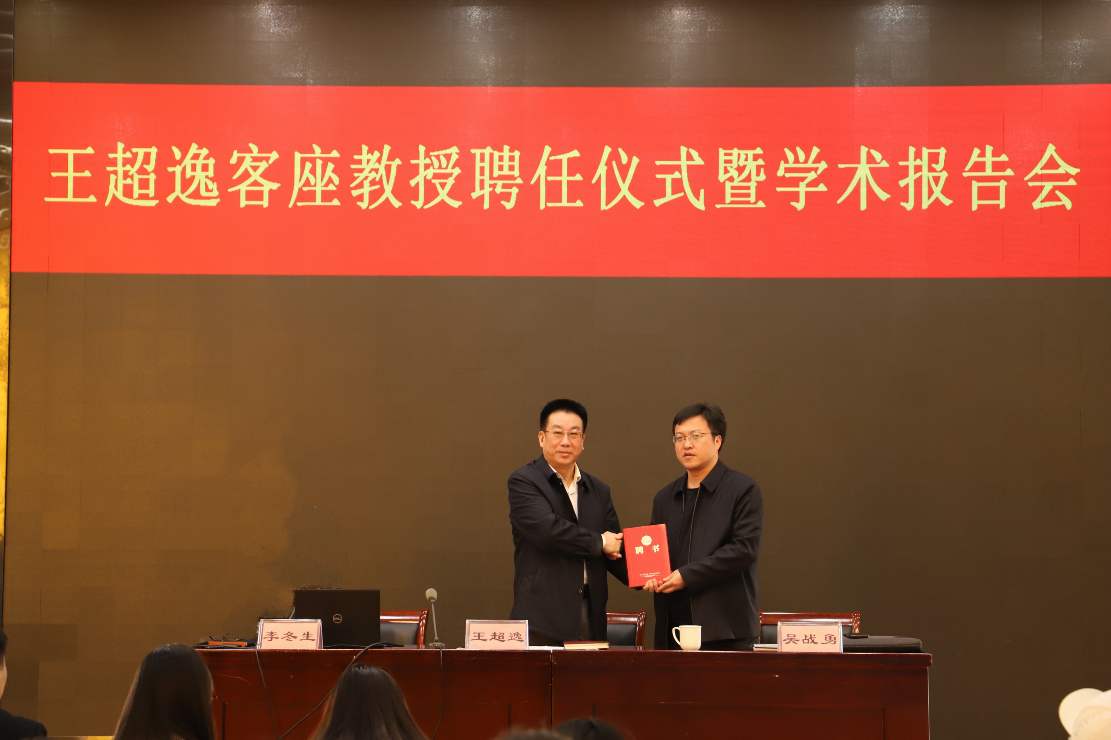 学院院长吴战勇为王超逸颁发客座教授聘书,对王超逸教授的贡献和成就进行高度评价,并表达未来深度合作的期望。