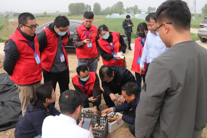 我校优秀校友、方城县政府班子成员薛洁源就当地羊肚菌种植产业发展概况向服务团师生作介绍。一行人前往羊肚菌种植基地进行实地考察,并就羊肚菌目前的种植规模、种植方式、加工方法、储存形式及销售途径等与姜庄村羊肚菌种植大户刘红平进行交流。