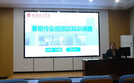 华成丽首先介绍关于宣传和普及传染病防范知识的重要性和必要性。然后从“认识传染病”、“防范知识”、“健康责任人”和“健康驿站”四个部分,向同学们普及传授防范知识及解决方法。她指出,春季为传染病高发季节,我们需要有效应对突发传染病,并重视解决方法。