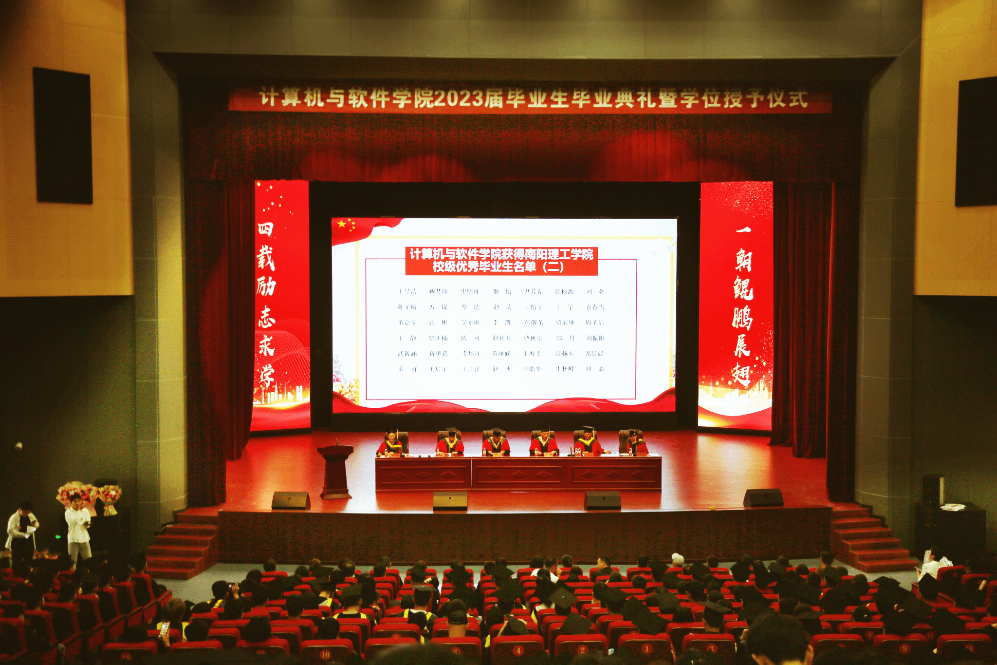 典礼上宣读2023届省级、校级优秀毕业生表彰决定,并为优秀毕业生代表颁奖。学院主要负责人为全体毕业生拨苏正冠、颁发学位证书。