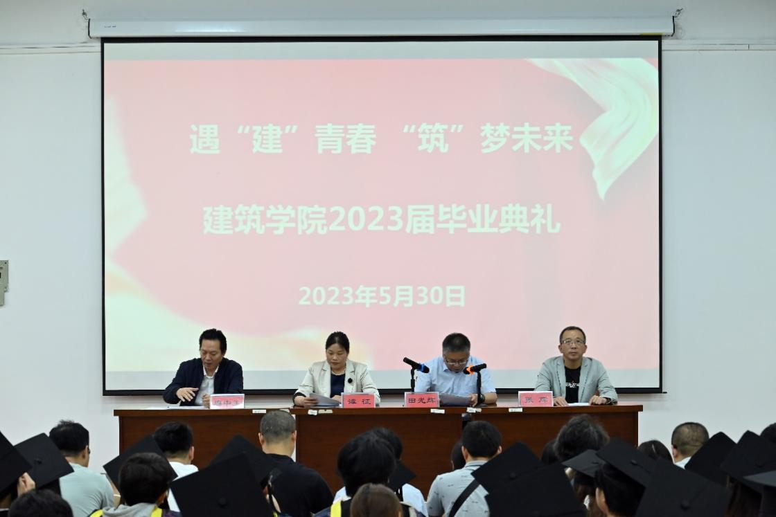 本网讯(特约记者/田真 学生记者/贾欣豪)5月30日,建筑学院2023届毕业典礼于七教101报告厅顺利举行。学院领导班子、各教研室教师代表,学工办全体辅导员及2023届毕业生到场参加,典礼由建筑学院党委书记田光辉主持。