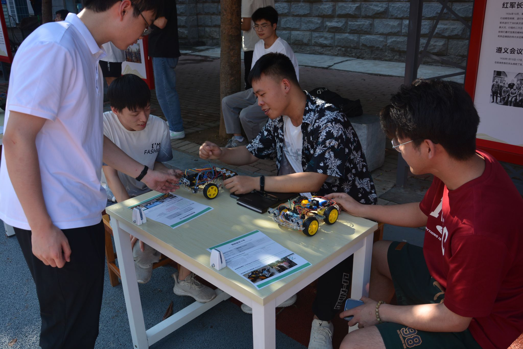 活动现场分为产品展示区和产品体验区两种。在产品展示区,社团创客们展示各式各样创意作品,有智能家具设备、室内智能小车、智能飞控设备、智慧农业模型等。在产品体验区中,现场的同学们热情高涨,大家积极参与、动手实践。同时,其他智力互动游戏大家也乐在其中,同学们获得乐趣的同时也让大家感受到了科技带来的快乐,更加落实了寓教于乐的意义,也让更多人了解了创新创业、走进创新创业。
