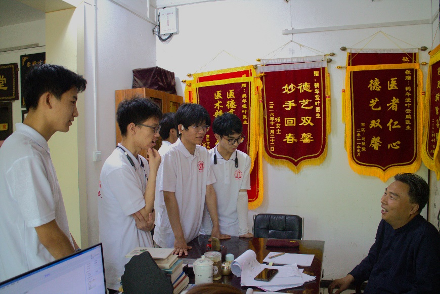 本网讯(特约记者/刘征 通讯员/蒋昊)为帮助学生了解民间优秀中医学者、民间的中医力量和医术妙方,向老中医请教自己在学医过程中遇到的困难和问题。张仲景国医国药学院今年组建了7个暑期社会实践分队,6月23日开始陆续出征奔赴活动地点,其中“寻访民间张仲景”暑期社会实践分队于6月23日至25日在南阳地区先后拜访了于洋、叶云鹏、樊连猛三位中医师,参观体验了每个中医馆的日常就诊就医实践活动。