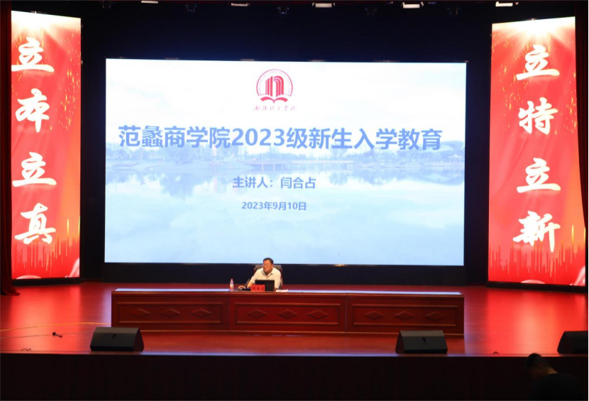 本网讯(通讯员/杨景莉 刘佳宁)9月10日上午,范蠡商学院举办2023级新生开学典礼暨军训动员大会。学院领导班子出席会议,教研室主任、学业导师代表、辅导员及2023级全体新生参加会议。