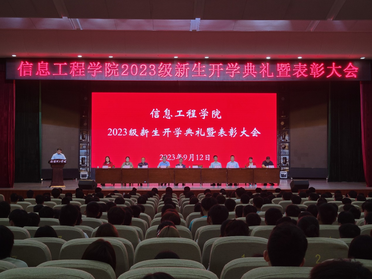 本网讯(特约记者/张露 学生记者/梁森森)9月12日晚,信息工程学院于西北校区小礼堂举行2023级新生开学典礼暨表彰大会。学院领导班子及各教研室主任、全体辅导员、500余名新生参与会议。