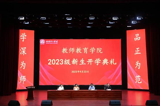 本网讯(特约记者/何雷雨 学生记者/赵昊)2023年9月23日,教师教育学院在东校区音乐厅举行2023级新生开学典礼。学院班子成员、2023级学业导师、各教研室主任、全体辅导员及2023级新生参加典礼。