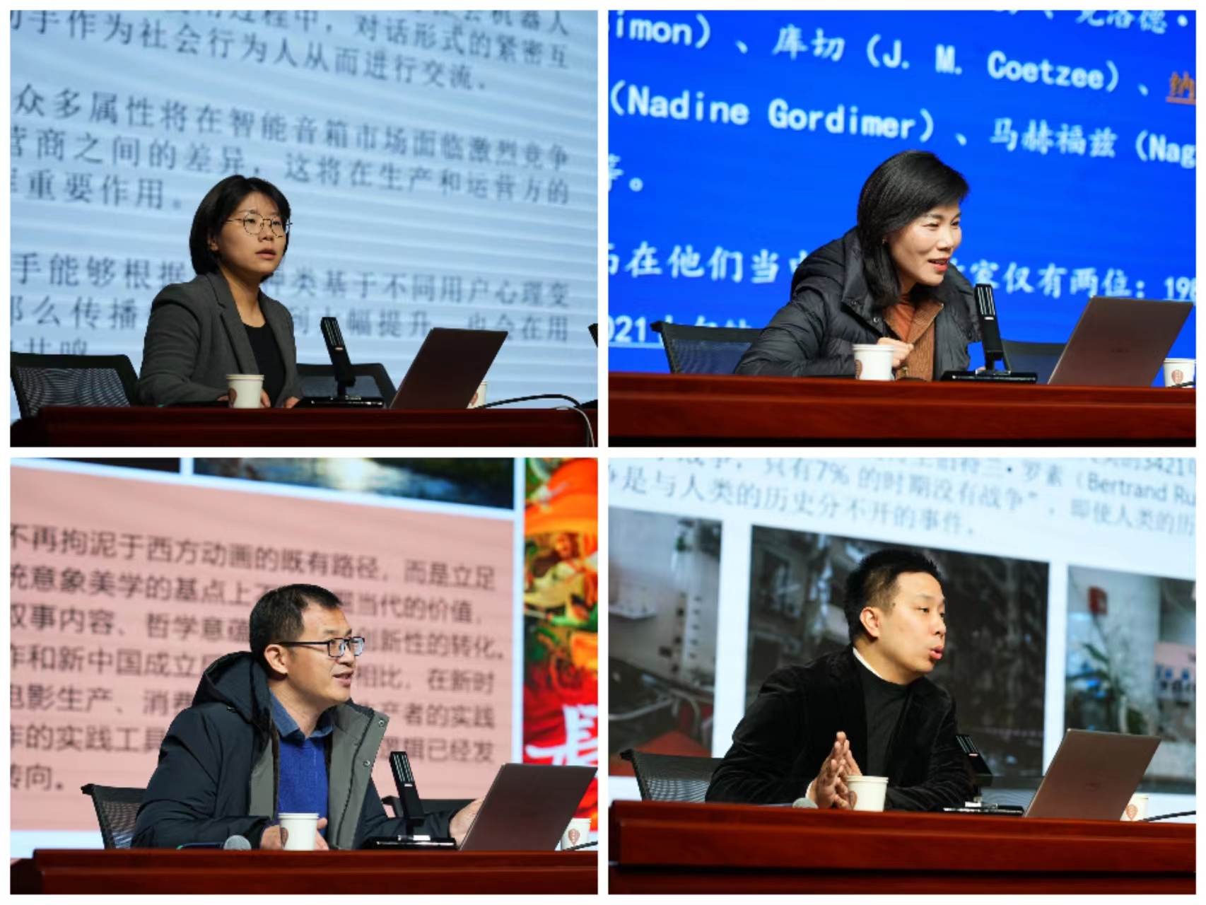 传媒学院刘珊珊博士、尹红茹博士、马权威博士、张允博士进行学术报告,他们分别就“基于价值采纳模型的智能语音助手用户心理研究、恩古吉后期小说转向研究、新时代中国动画电影中传统意象美学的实践转向、全面抗战时期中国战地摄影研究——以沙飞作品为中心的考察”等议题进行精彩分享。四位博士结合自己研究内容,从不同视角阐释了相关领域的研究热点。