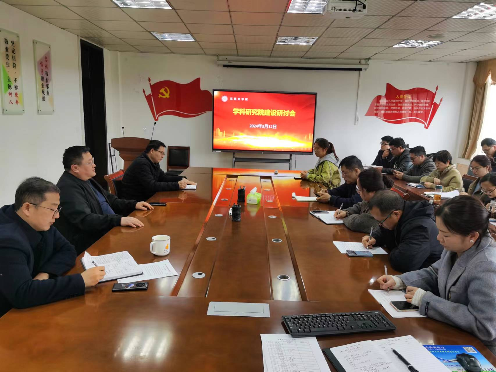 3月14日,学院召开学科研究院研究方向论证会,校教务处处长吴战勇、教学评估与质量监控中心主任史政海出席会议。学院相关负责人介绍学科建设基础,着重汇报学科研究院研究方向初步讨论结果。两位专家围绕学科研究院研究方向分别阐述建设性观点,并针对研究方向、平台建设、人才培养、社会服务等内容提出意见建议。