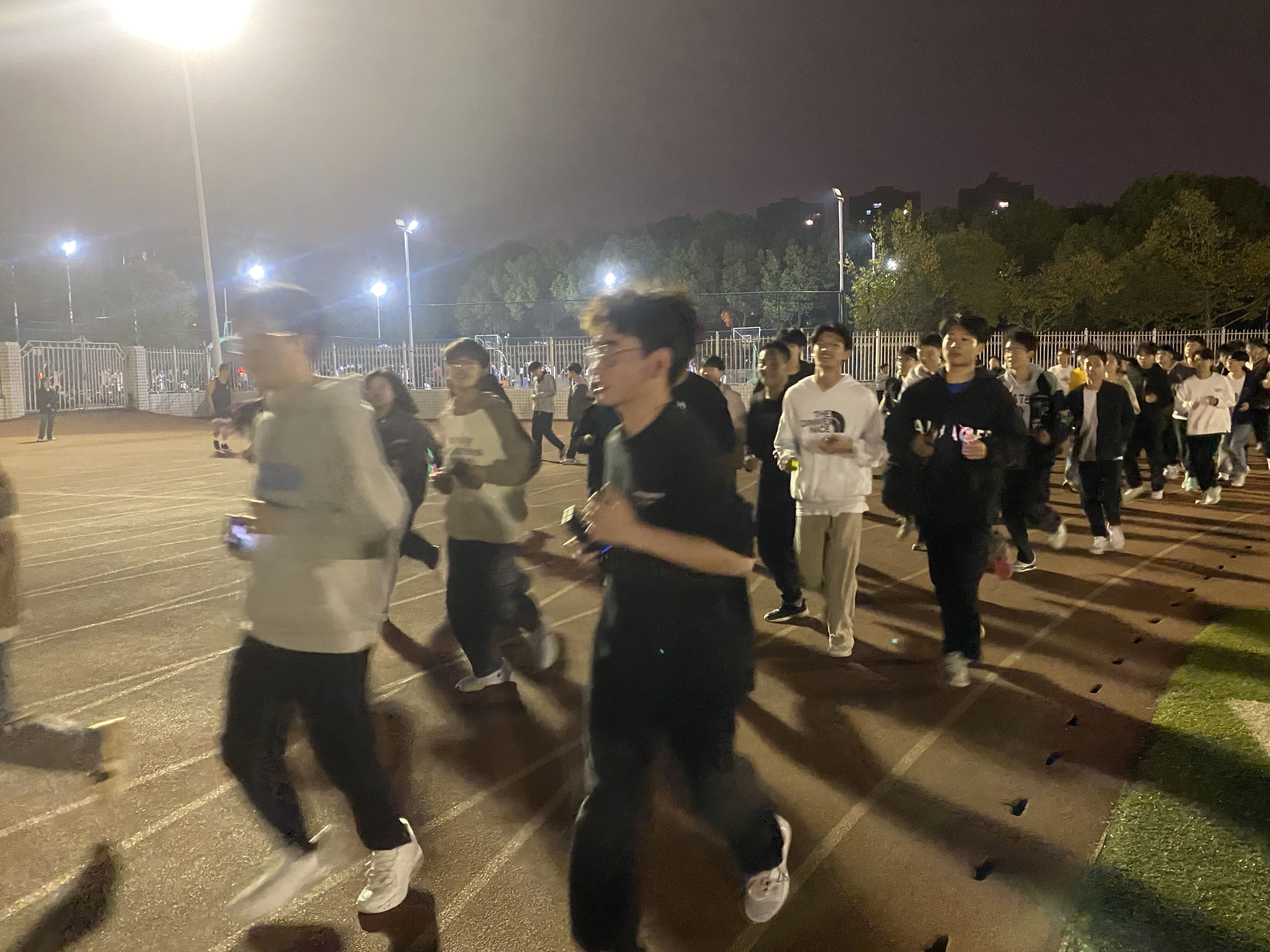 随着音乐响起,同学们手持荧光棒开始慢跑,大家围绕操场跑三圈后活动结束,运动带来的轻松和惬意让参与者意犹未尽。