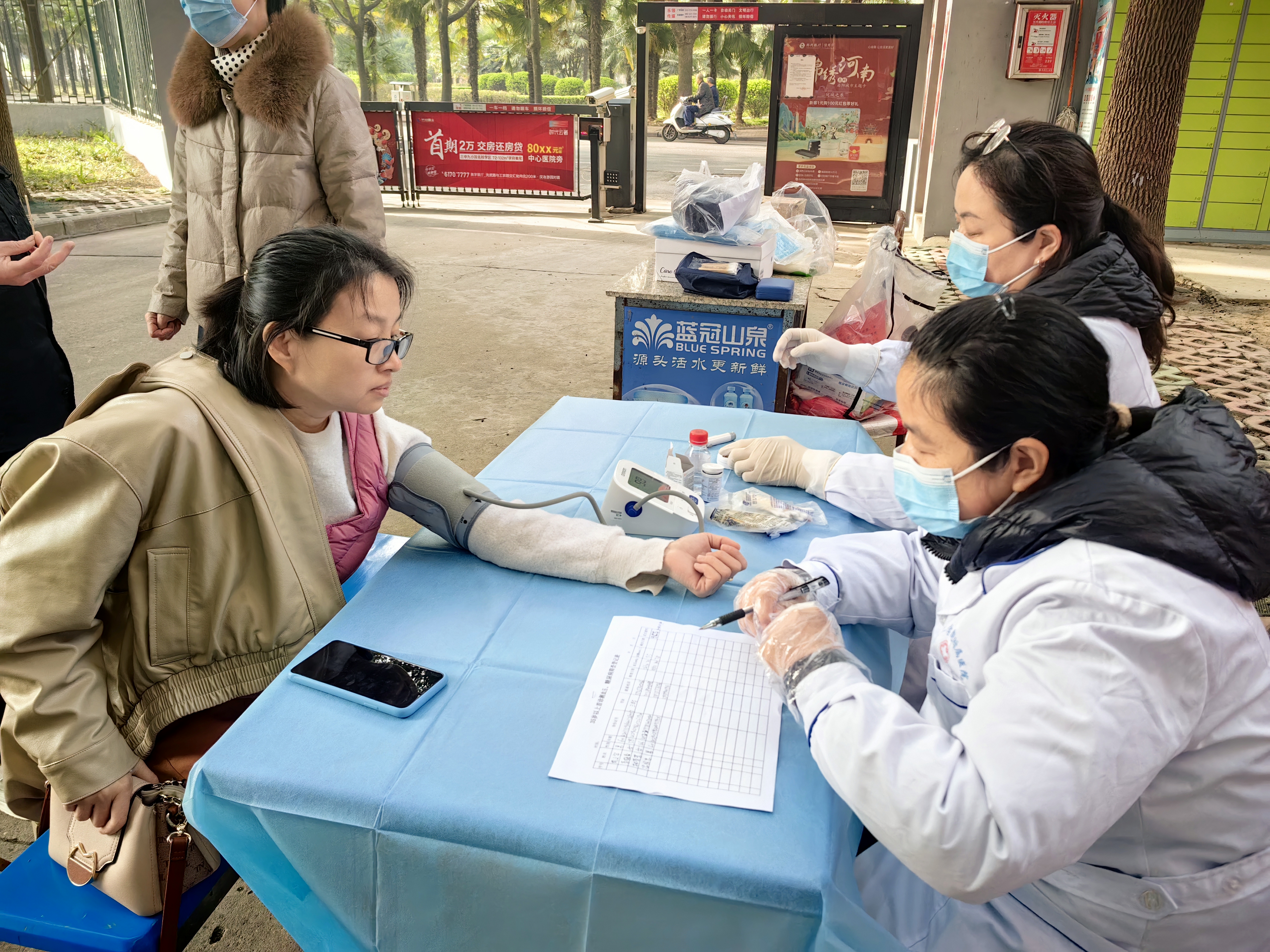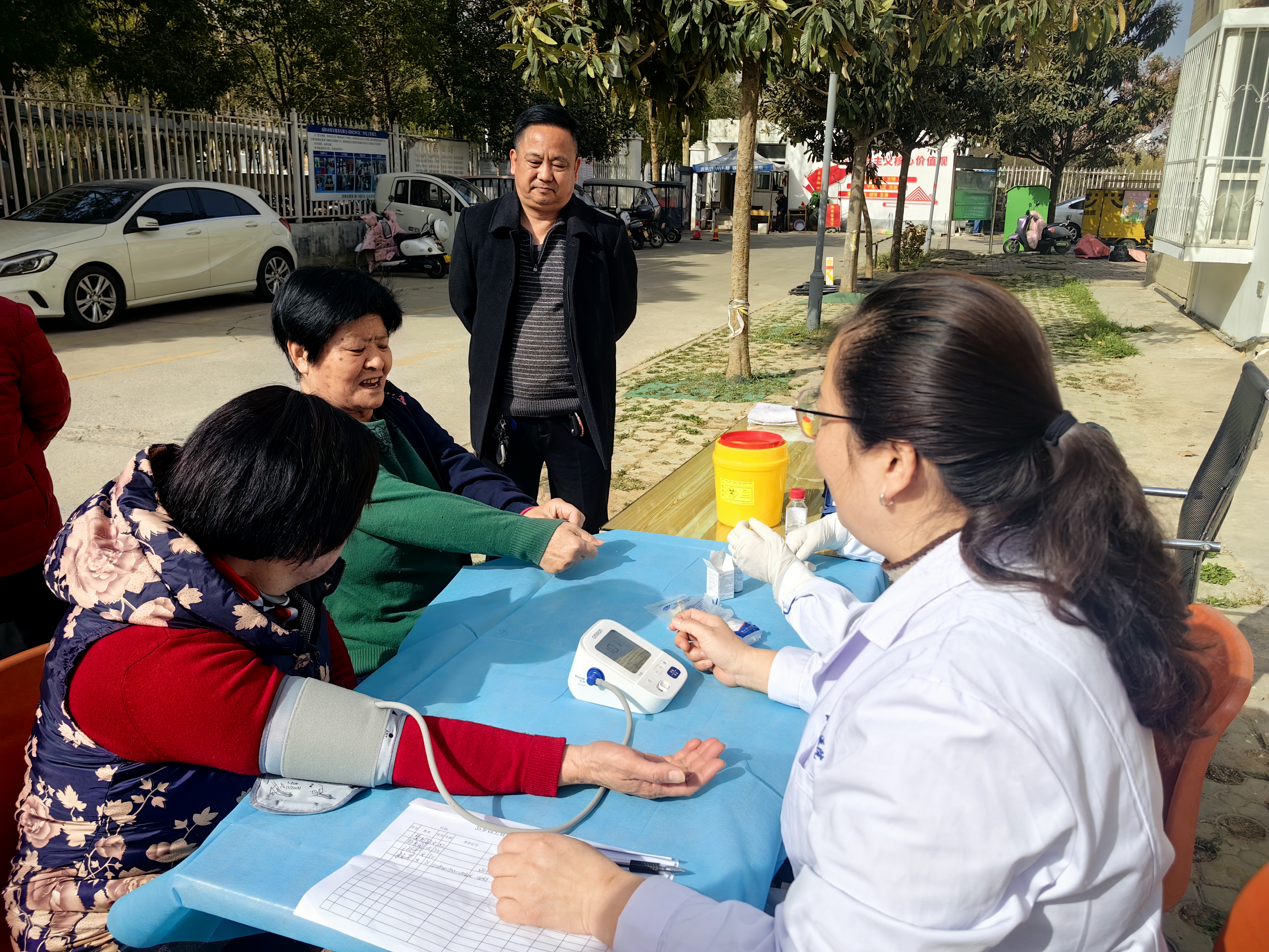 活动现场,医护人员耐心询问居民身体健康状况,解答疑惑,发放健康教育处方,免费进行血压、血糖测量,并为35岁以上的糖尿病及高血压患者建立监测档案,收到大家的一致称赞。