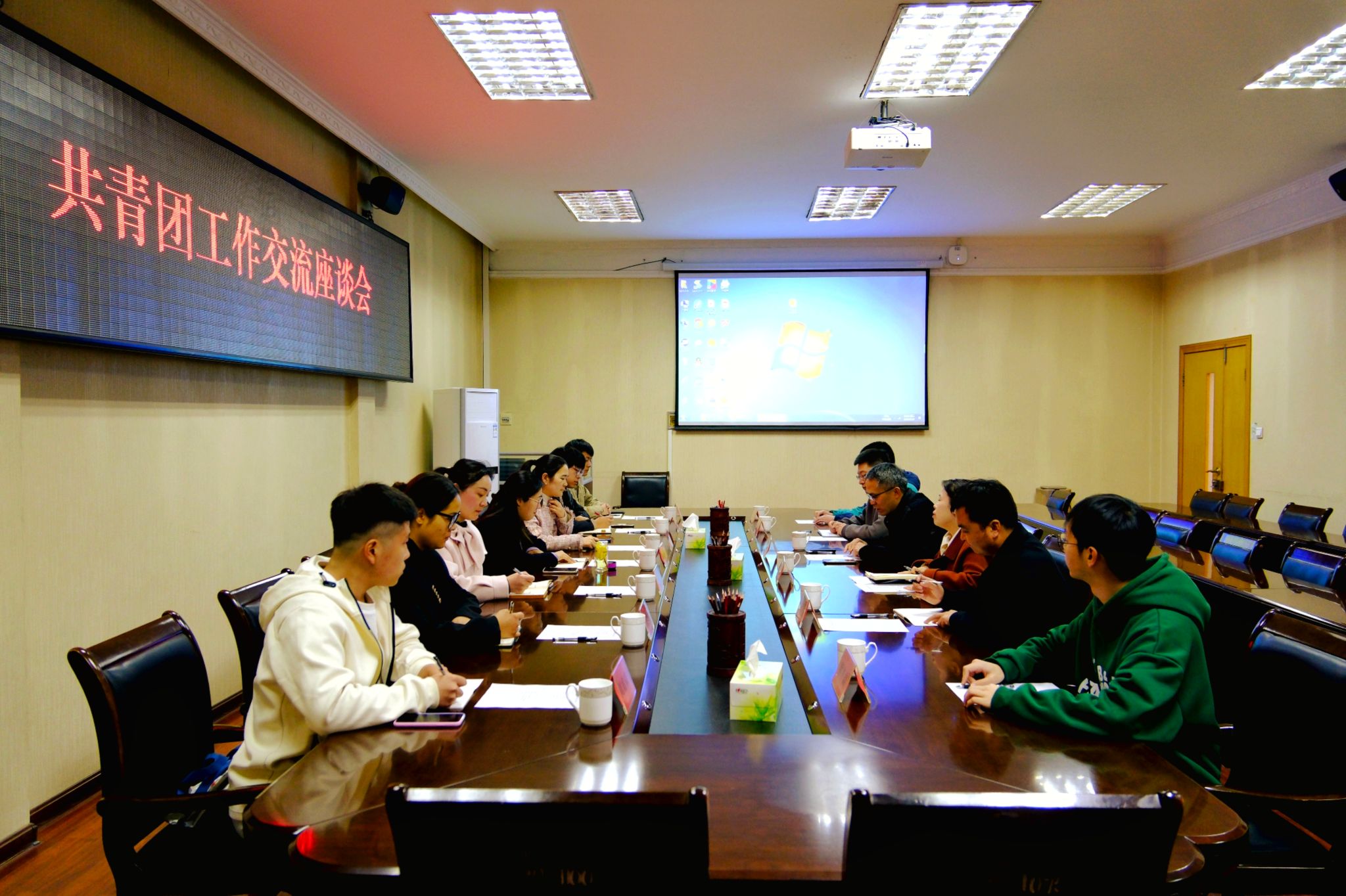 本网讯( 学生记者/吴奕彤)3月28日,南阳农业职业学院团委相关负责人一行来我校考察交流共青团工作,双方在第一会议室进行座谈交流。党委学生工作部部长、学生处处长、校团委书记郭兴华及部分团学干部参加会议。