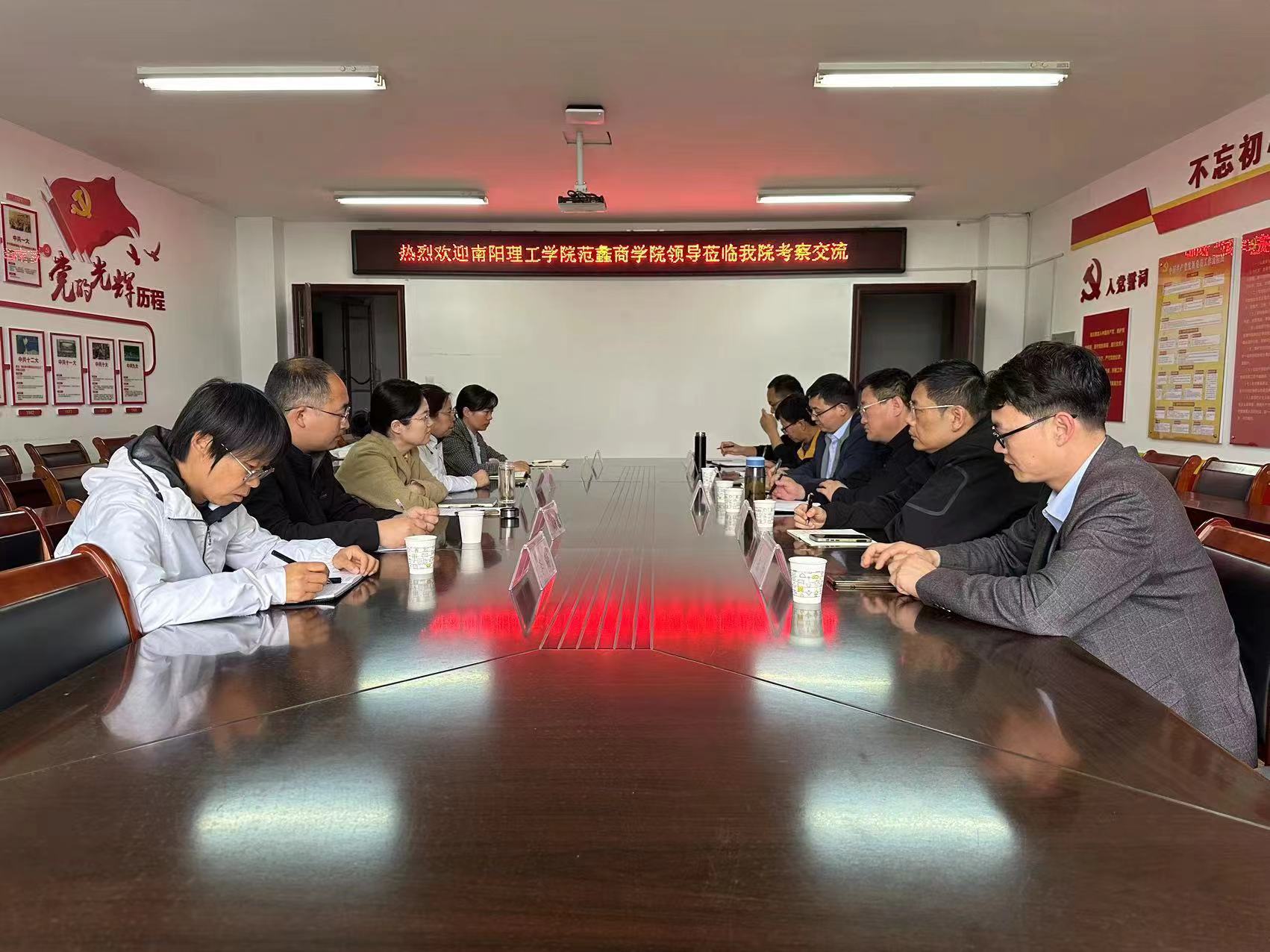 在黄淮学院,学院主要负责人和黄淮学院经管学院领导分别介绍各自发展情况,就专业发展、学科建设,科研工作等重点领域的措施和成效进行详细沟通。经管学院就教育部审核评估工作的重点内容和经验进行详细介绍,双方就其中关键问题进行深入沟通。