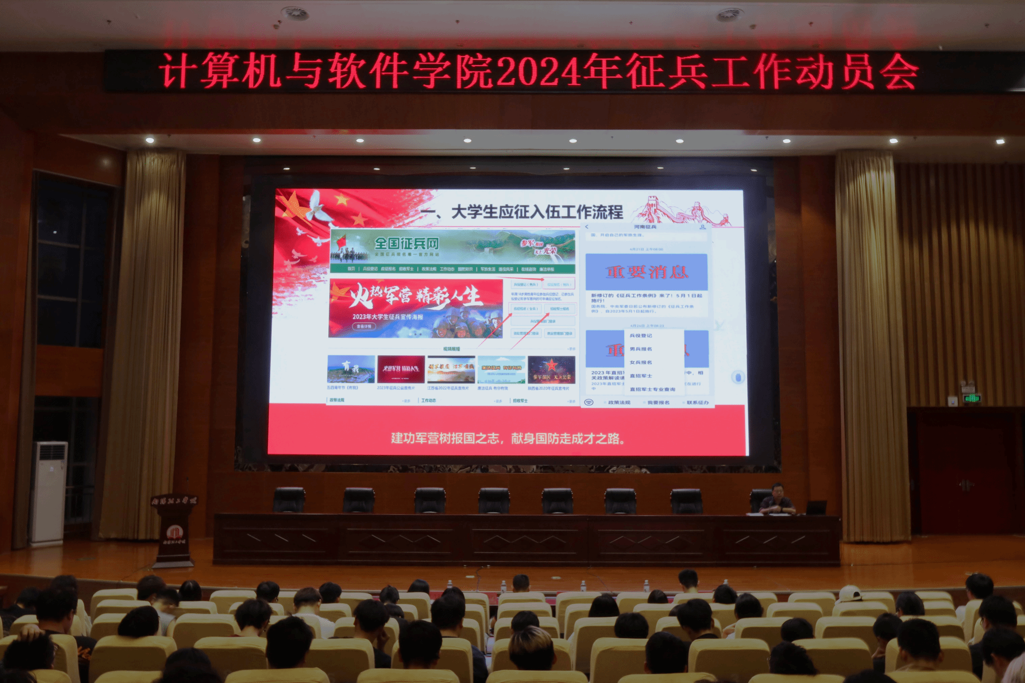 本网讯(特约记者/李洋)5月16日,计算机与软件学院在第三报告厅召开2024年度征兵工作动员会。校人民武装部国防教育征兵办公室主任王吉春,计算机与软件学院毕业班辅导员、武装专干以及学院学生代表参加大会。