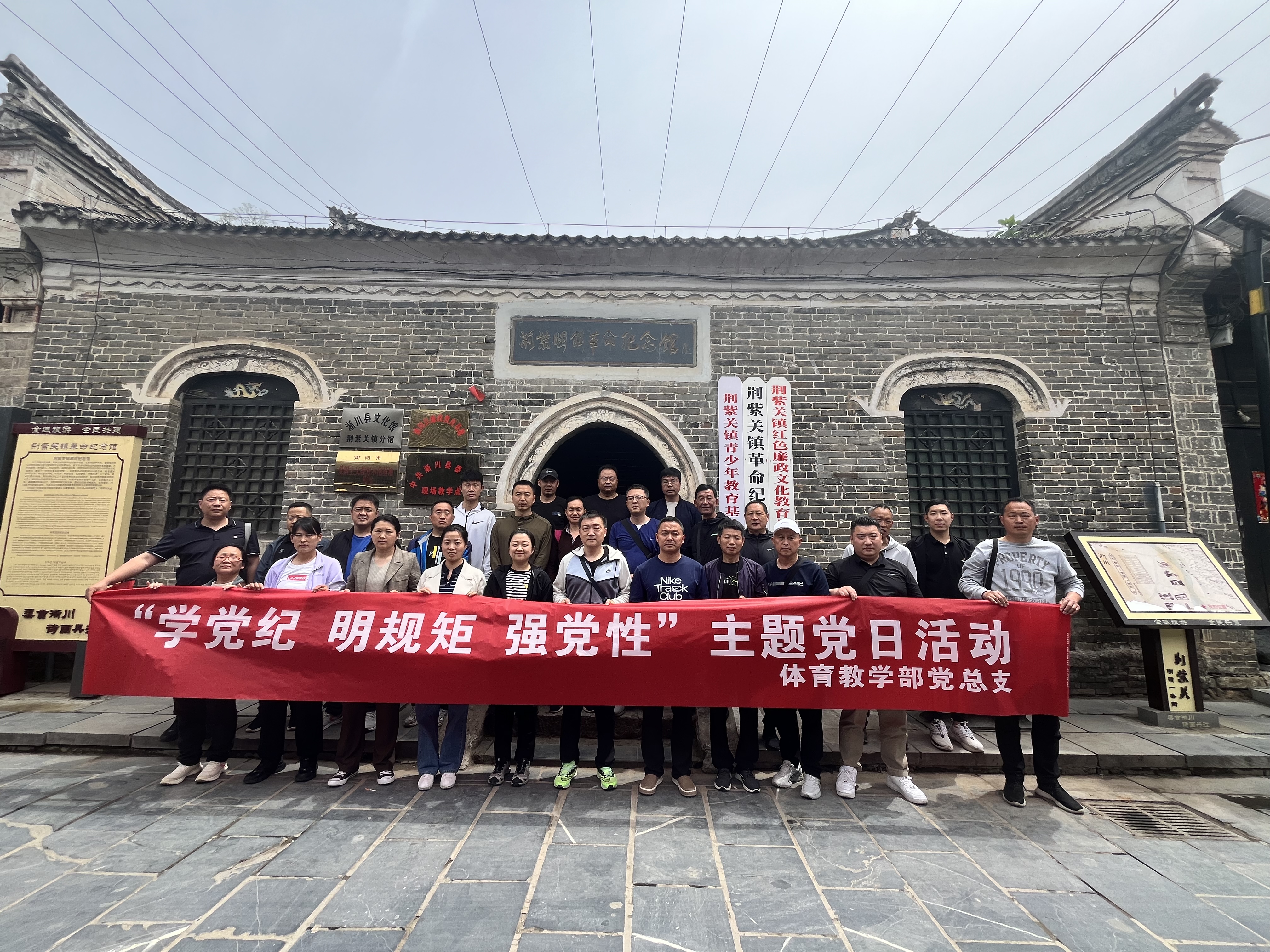本网讯(特约记者 徐驰)4月20日,体育教学部组织全体党员和入党积极分子前往淅川县荆紫关镇革命纪念馆,开展“学党纪 明规矩 强党性”党纪学习教育主题党日活动。