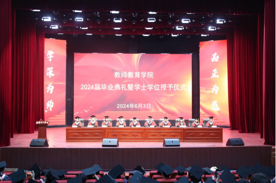 会上,学院相关负责人分别宣读教师教育学院准予毕业和授予学位的决定、优秀毕业生名单及考研上岸学生名单、2024届校友联谊会会长、副会长及班级理事名单,并为毕业生赠送纪念品。