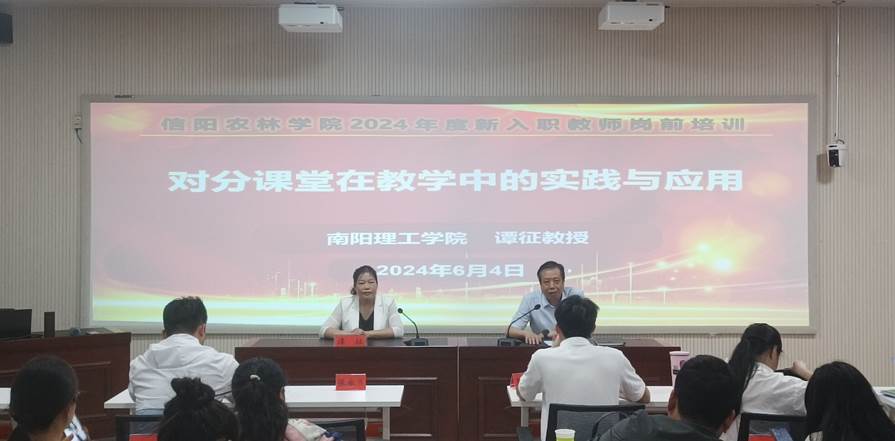 本网讯(特约记者/余淑君 陈沛金)6月4日下午,我校教师发展师、全国高校网络培训中心对分课堂培训师、建筑学院院长谭征教授受信阳农林学院教师发展中心邀请,为该校2024年新入职教师和部分专任教师共50余人作《对分课堂在教学中的实践与应用》的主题报告。信阳农林学院党委教师工作部部长、教师发展中心主任赵师成和教发中心专职副主任邵颖参加会议。