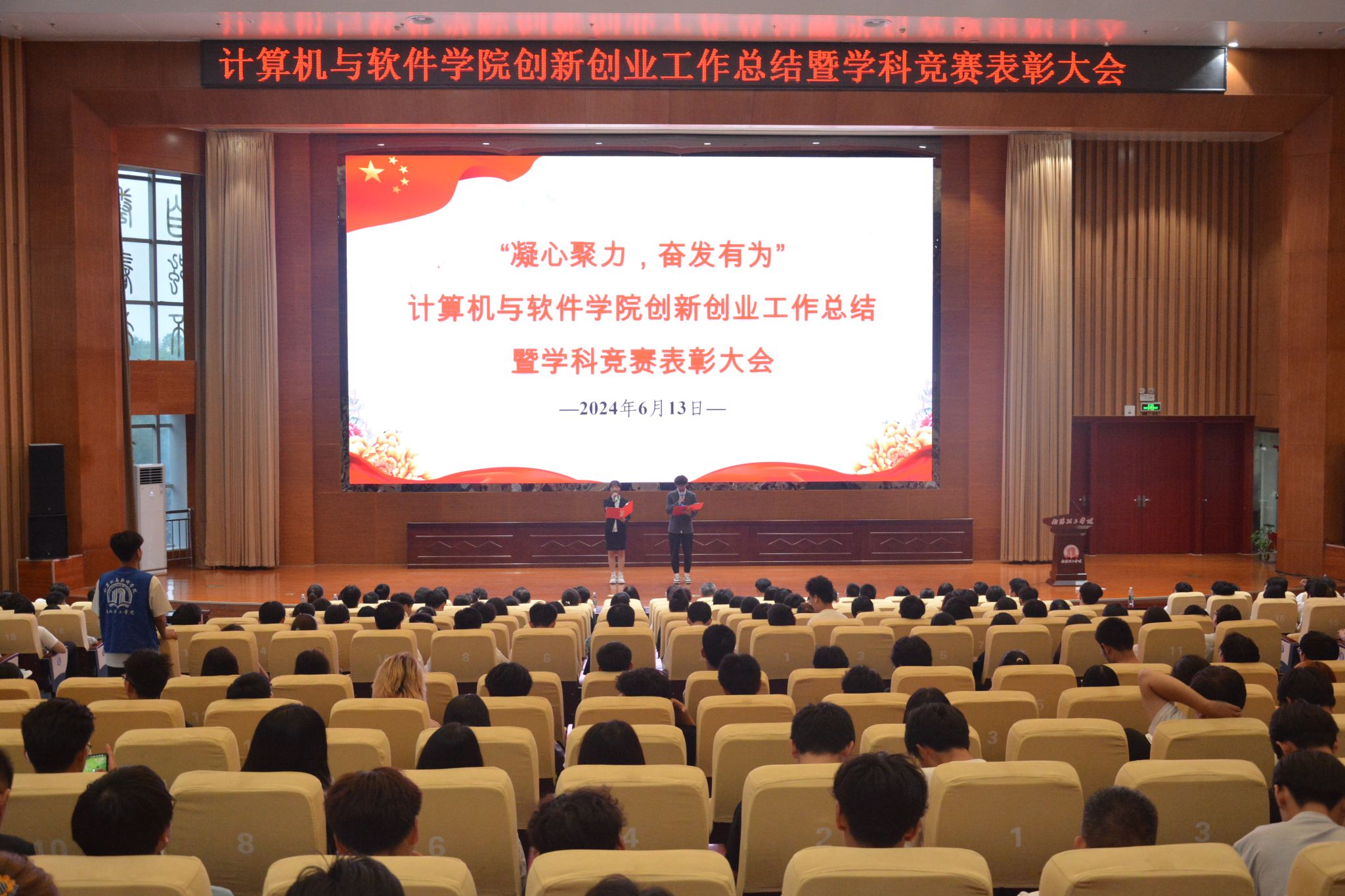 会议宣读《关于表彰计算机与软件学院2023-2024学年学科竞赛暨创新创业工作先进集体和先进个人的决定》,并对学院2023-2024年度学生社团、学科竞赛、创新创业工作先进集体、先进个人、优秀指导教师进行表彰,获奖学生和教师代表先后上台发言。