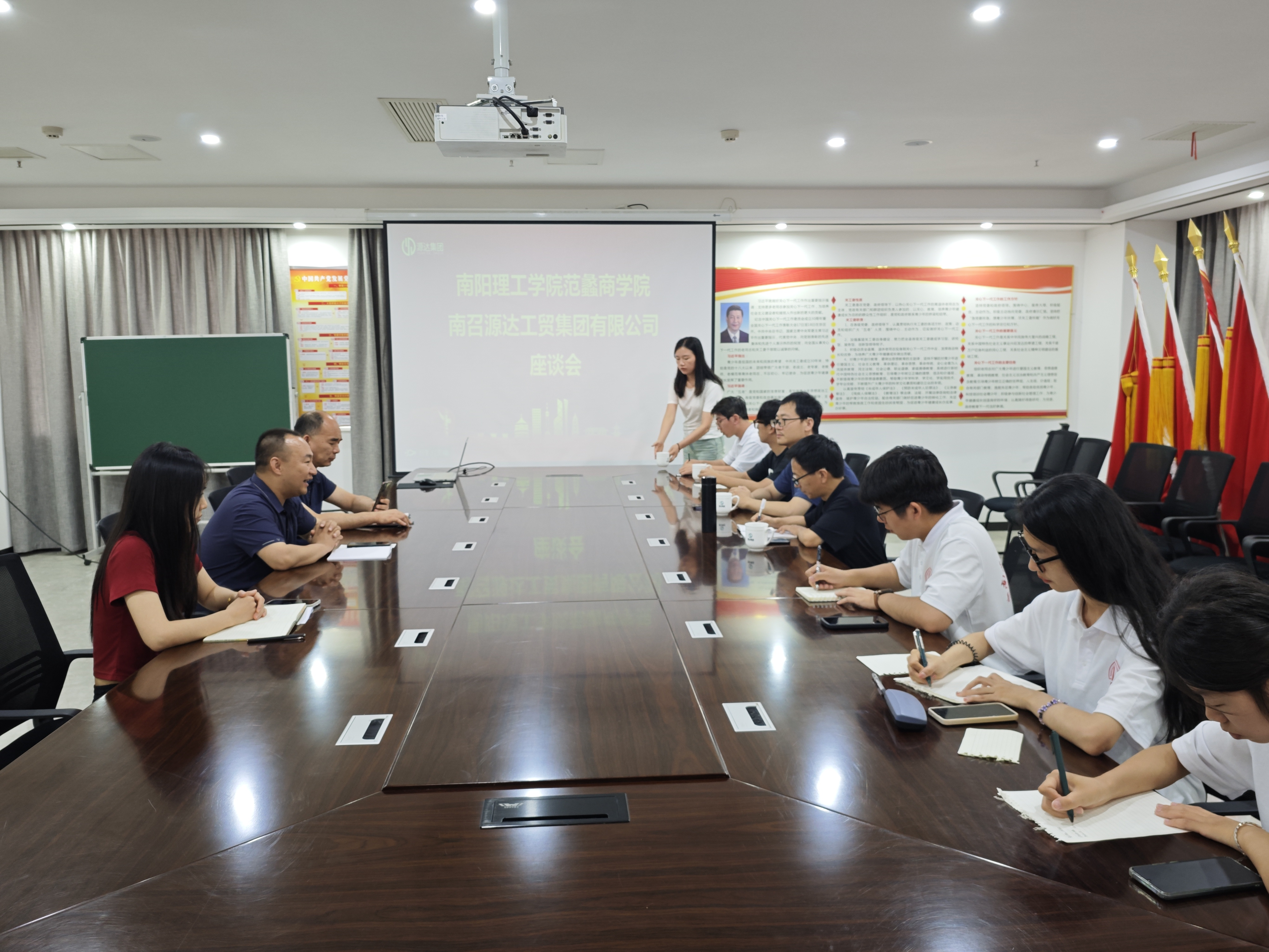 7月5日上午,实践团赴学院持续结对帮扶企业南召源达工贸集团有限公司开展结对帮扶工作。座谈会上企业负责人介绍企业发展概况,提出企业在矿产、房地产、旅游、中药材等产业发展中存在的问题和战略发展瓶颈,在深入研讨交流后老师们针对该企业实际提出建设性建议和解决问题的对策。
