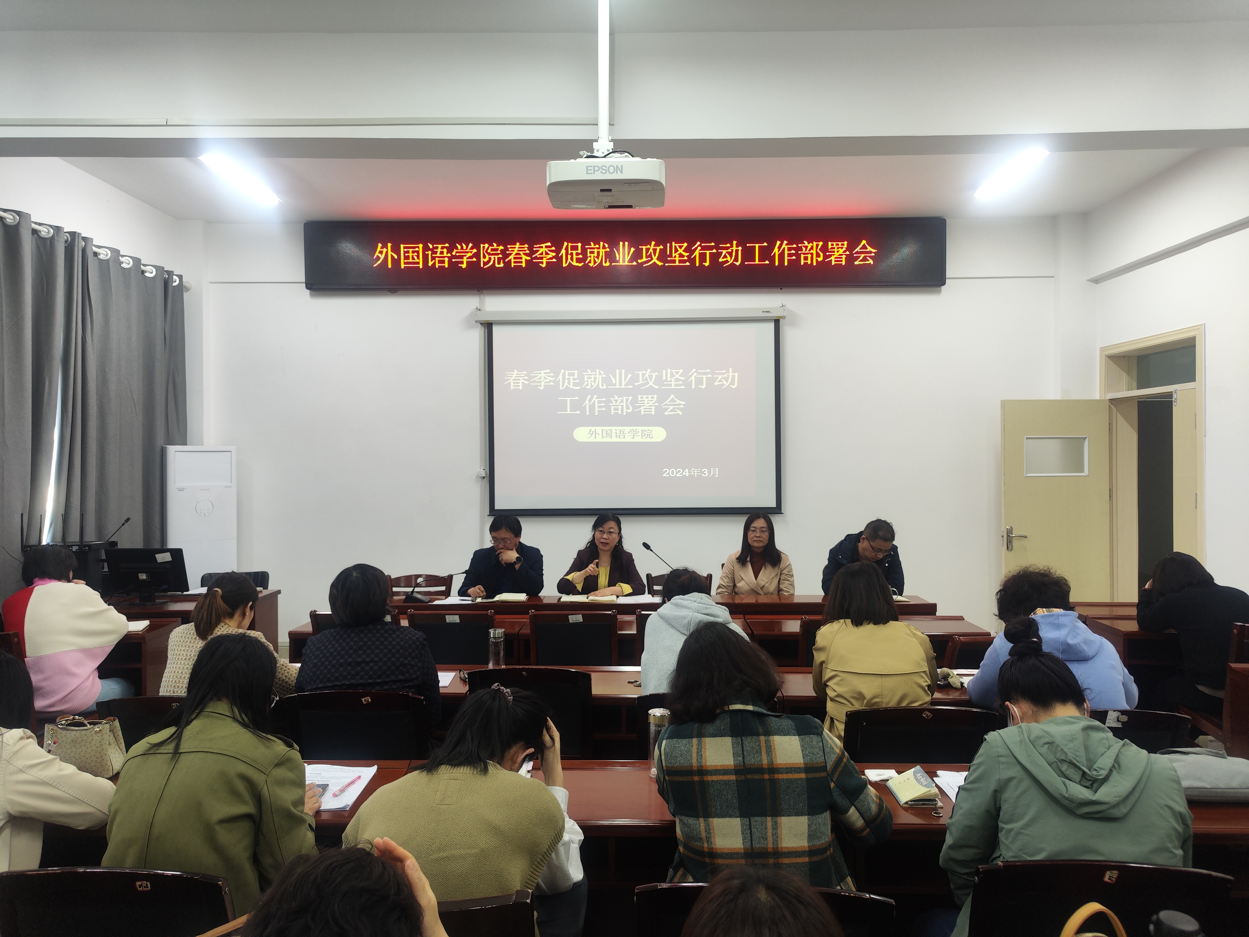 学院第一时间制定《外国语学院 2024届毕业生促就业攻坚行动方案》,成立以院长(书记)为组长的领导小组,完善“领导班子+专业负责人+就业专干(毕业班辅导员)+学业导师+就业指导教师”毕业生就业工作队伍,着力打造就业工作“五位一体”责任体系。