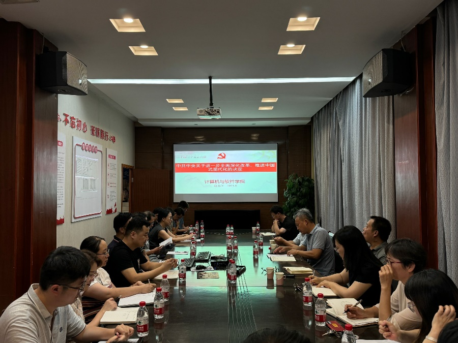 本网讯(特约记者/杨琰)8月31日下午,计算机与软件学院召开专题会议传达学习贯彻党的二十届三中全会精神,安排部署相关学习宣传和贯彻落实工作。会议由学院党委书记赵东江主持,学院班子成员、全体科级干部、各党支部书记参加会议。