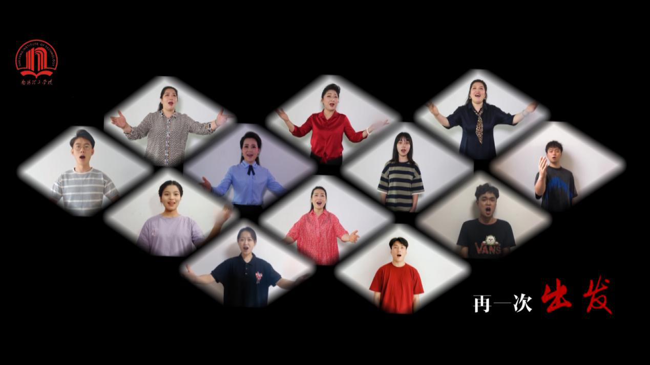 本次演唱的歌曲《再一次出发》邀请6名教师代表,9名学生代表,共同接力演唱。演唱者通过手机、家用摄像机等方式,各自在家录制演唱内容,后期经过剪辑、合成的MV中还饱含有学院领导、教师代表的深情祝福,以及毕业生在校生活的美好回忆。
