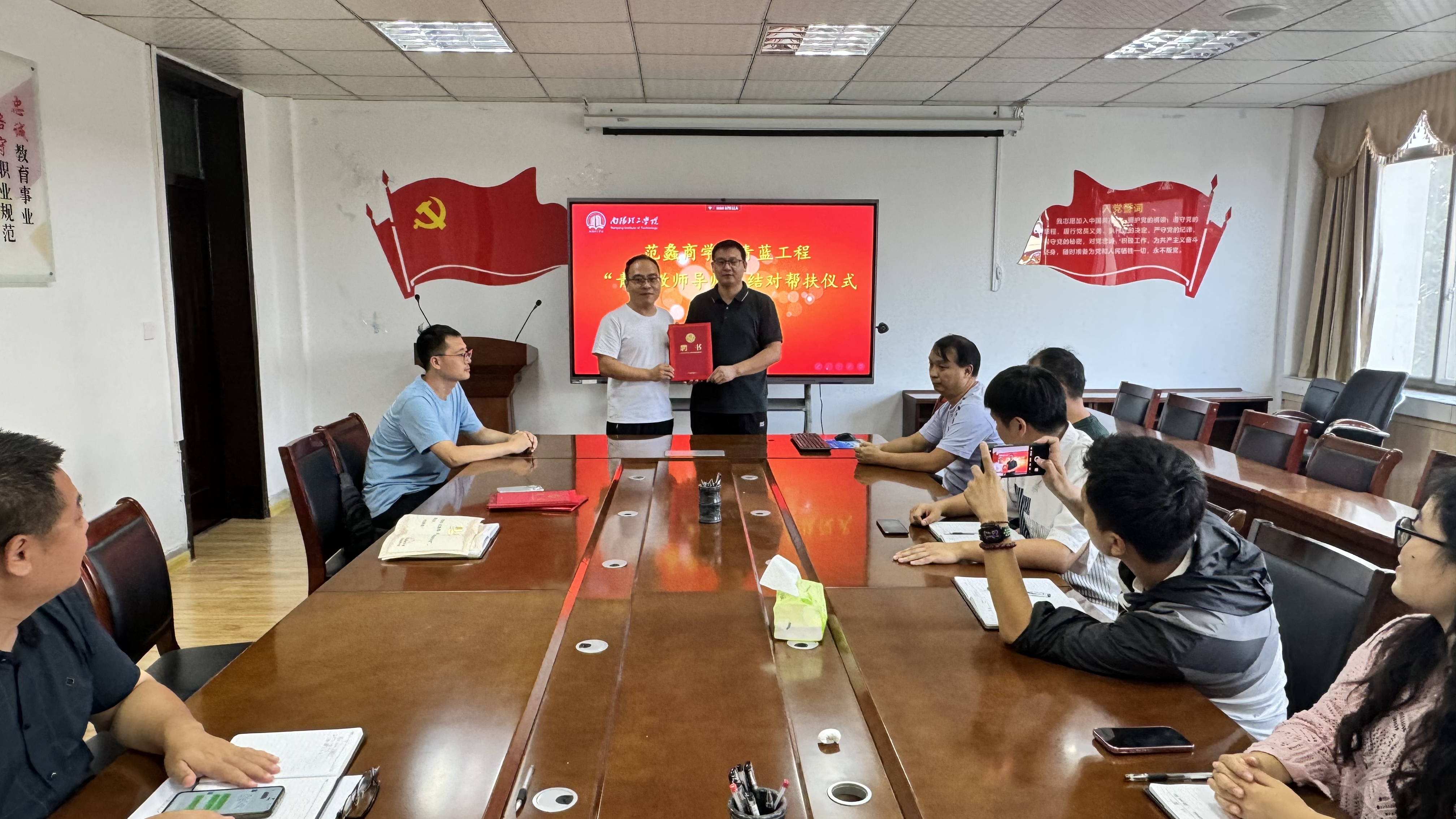 郭永奇为导师们颁发聘任证书。导师们表示,将不负重托,认真履行导师职责,为青年教师的成长贡献力量。(校对/李冬生 审核/郭永奇 终审/鲁静薇)
