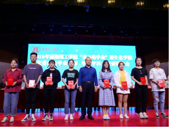 仝奋飞宣读了《关于表彰2019年度南阳理工学院“奋飞奖学金”的获得者的决定》,并为赵淑燕等4位一等奖获得者,叶丽靖等8位二等奖获得者和来鹏飞等9位三等奖获得者颁发荣誉证书。他叮嘱获奖同学珍惜荣誉、戒骄戒躁,充分发挥示范引领作用,锐意进取,再创佳绩;同时希望其他同学以他们为榜样,全面发展,勤于学习,善于创造,甘于奉献,立志成才。
