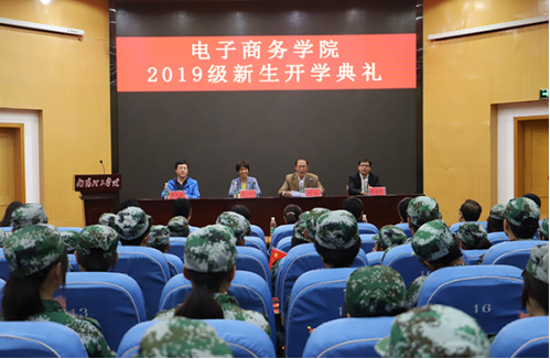 本网讯(特约记者/张雨爽学生通讯员/侯瑞)9月16日,电子商务学院在领创空间二楼报告厅举办2019级新生开学典礼。电商学院院长王一平,党总支书记逯忆,副院长吴战勇、郭永奇,各教研室主任,19级学业导师出席,16、17、18级在校生代表及19级全体新生参加典礼。典礼由逯忆主持。