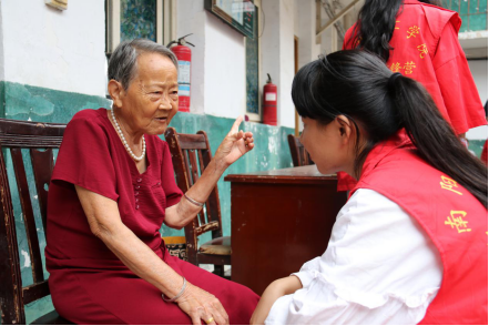 最后,老师们和志愿者们一同来到了康乐敬老院,为老人们送去大米、牛奶和食用油等慰问品,并表达了节日的问候。志愿者们帮助老人们打扫卫生,陪老人们聊天,老人们向大家谈起自己的过去,通过他们的故事,志愿者们也了解到了时代的变化,狭小的院子里充满欢声笑语。交谈过后,志愿者们给老人们表演了准备的节目。分别是诗朗读《歌唱祖国》和歌曲《我们走在大路上》慷慨激昂的朗诵和气势磅礴的合唱,让老人们不由自主地跟着打节拍,赢得阵阵掌声。