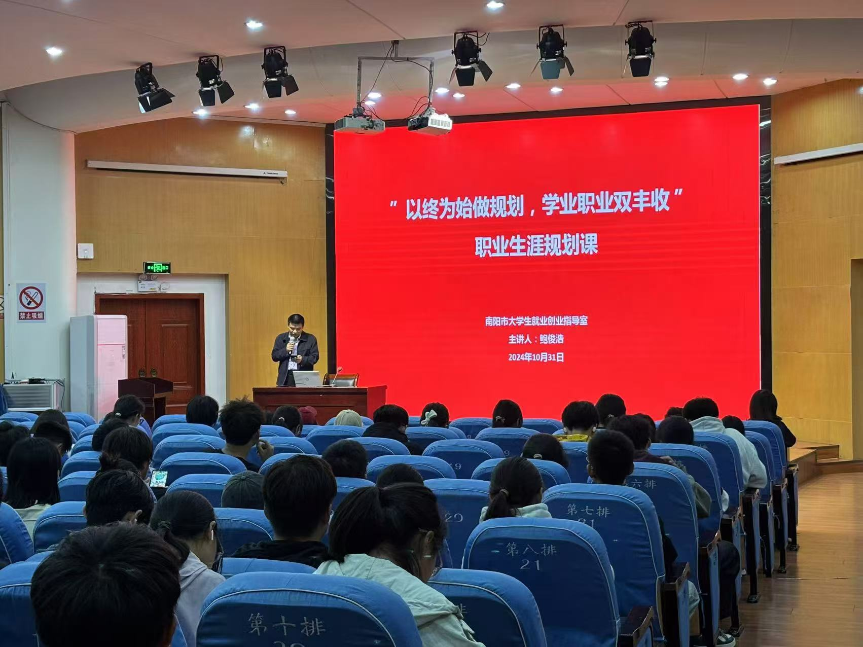 本网讯(通讯员/张鑫)10月31日,我校举办“以终为始做规划,学业职业双丰收”职业生涯规划专题系列讲座,首场讲座由南阳市大学生就业创业指导室特邀讲师鲍俊浩主讲,来自计算机与软件学院、教师教育学院、数理学院等数10个学院的近200名学生参加。
