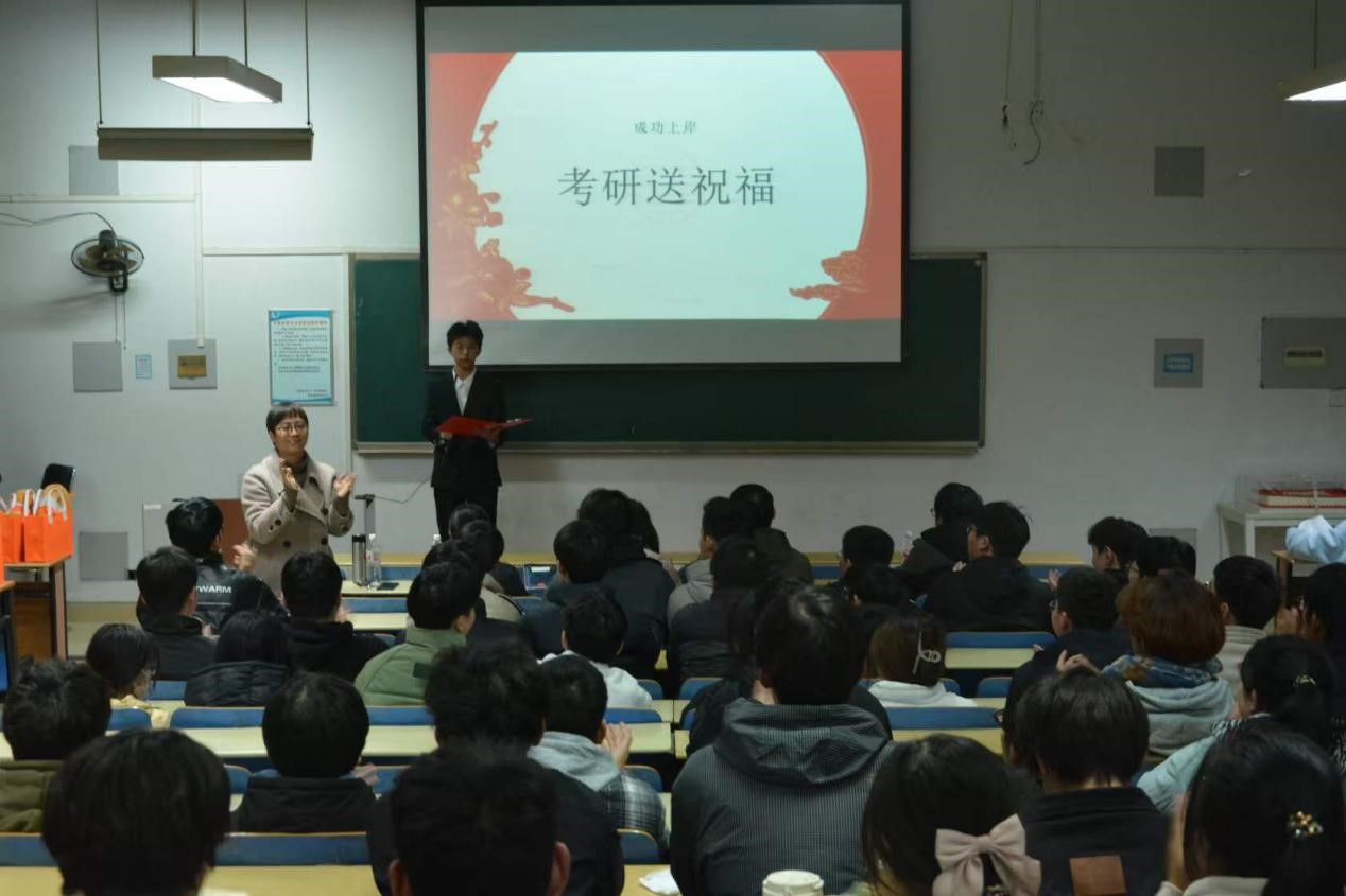 在祝福发言环节,学生代表满怀激情地走上讲台,以激昂的话语和诚挚的情感,讲述在备考过程中那些不为人知的艰辛与坚持,让在场的每位同学都深受触动。往届上岸学子分享了个人备考经验,从课程的复习技巧到考试答题规划,从时间的合理规划到心态的调整策略,事无巨细地为学弟学妹们答疑解惑。老师们以专业且深情的话语,表达对考研学子的殷切期望与坚定支持,鼓励他们在考场上沉着冷静,自信应考,为实现自己的梦想全力以赴。
