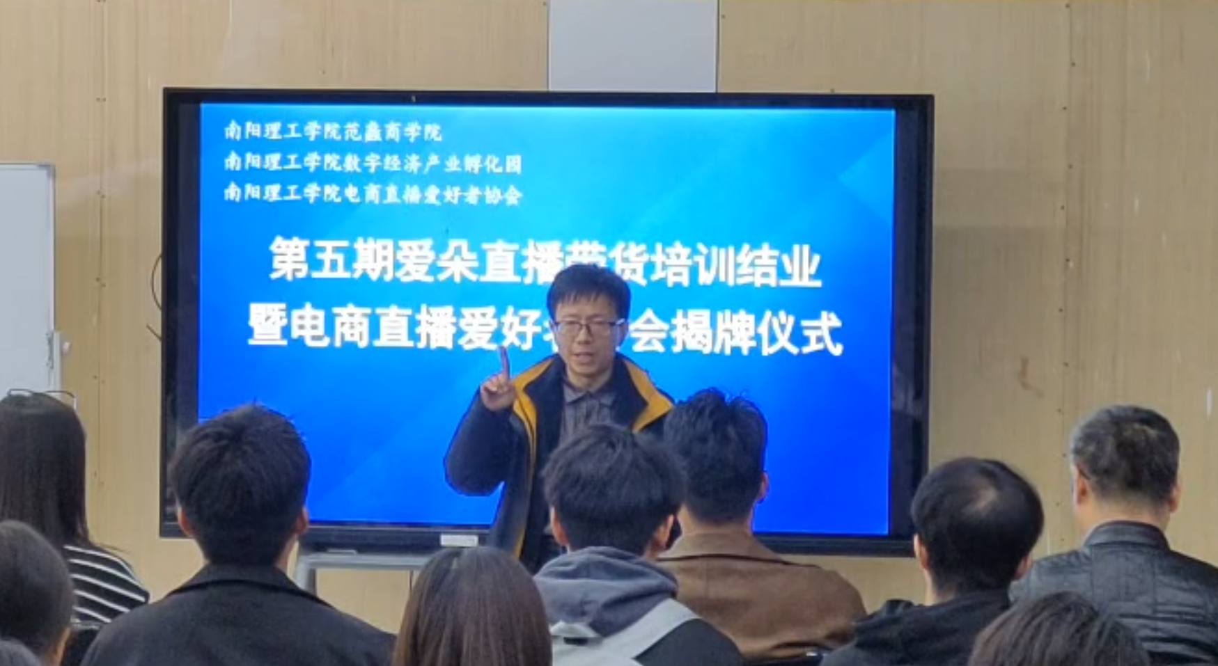 会上还举行了南阳理工学院电商直播爱好者协会揭牌仪式。(摄影/朱世基 校对/周青浮 审核/闫合占)