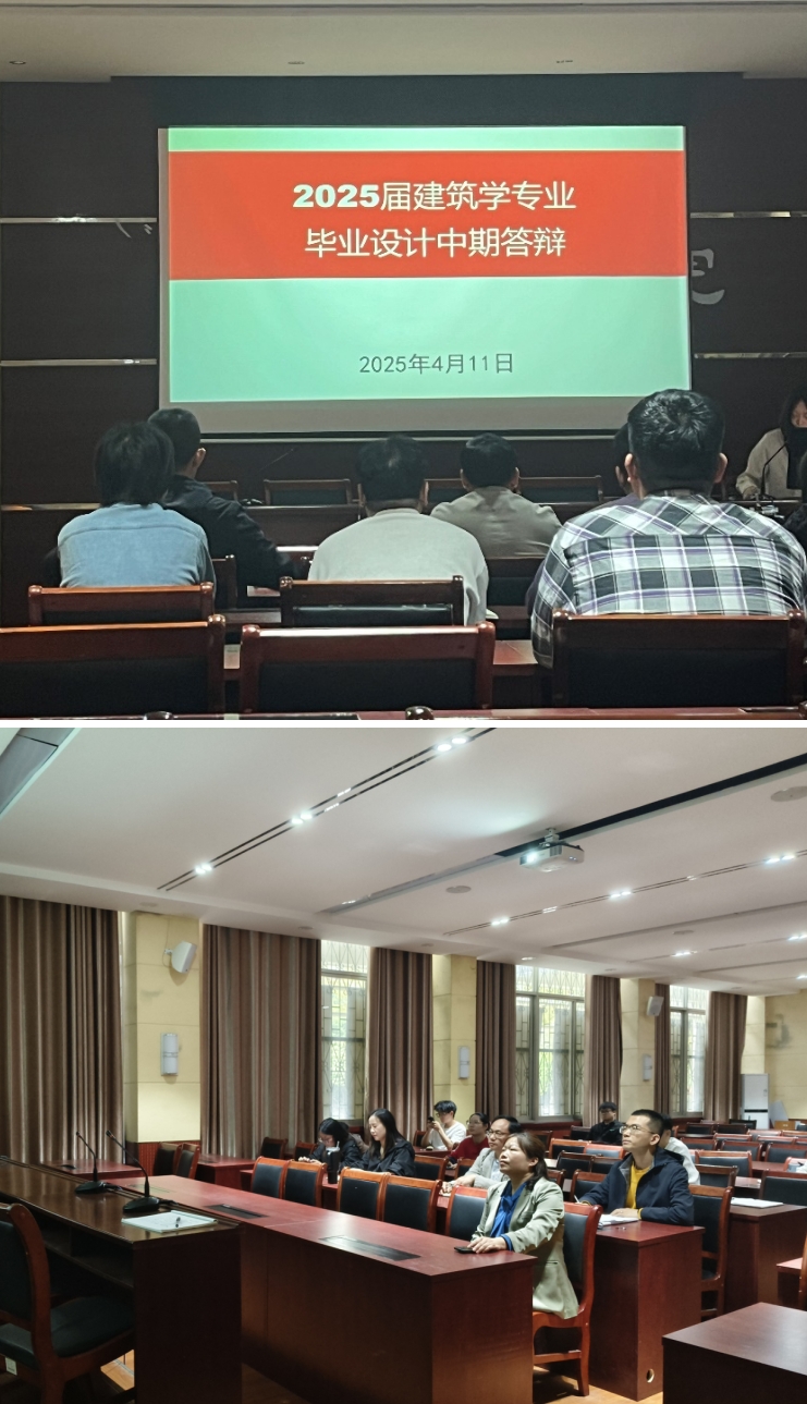 本网讯(特约记者/郭立苹)4月11日,建筑学院举办2025届毕业设计中期答辩会,并联合湖南大学、长安大学、广西大学等11所中西部高校同步开展跨区域联合答辩活动。本次答辩覆盖建筑学、城乡规划等四个专业,由校内外专家组成评审团队,围绕设计创新性、实践价值等维度展开点评,为毕业设计优化提供指导。