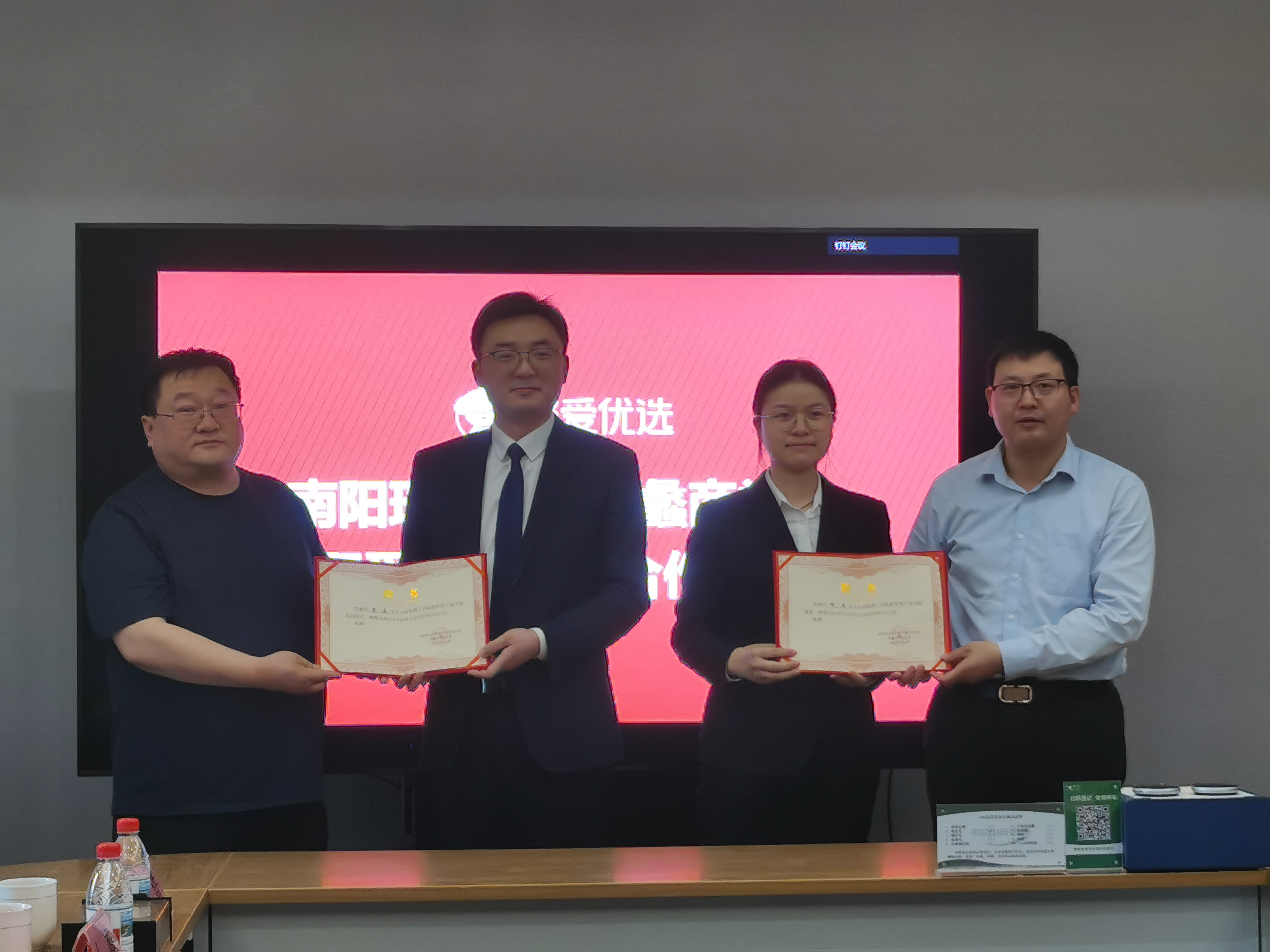 洽谈会前,举行新零售产业学院执行院长、理事的聘任证书颁发仪式。河南省聚爱数字科技有限公司相关部门负责人、新零售产业学院学院相关负责人、部分骨干教师参加会议。(摄影/程冉 校对/周青浮 审核/郭永奇 终审/鲁静薇)