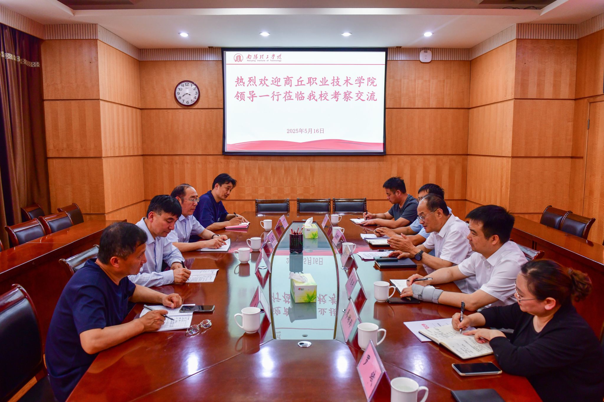 本网讯(特约记者/罗斌)5月16日,商丘职业技术学院国有资产管理处处长王红军一行来校考察交流。我校国有资产管理处处长张学军主持座谈会,两校国有资产管理处及相关单位负责人参加活动。