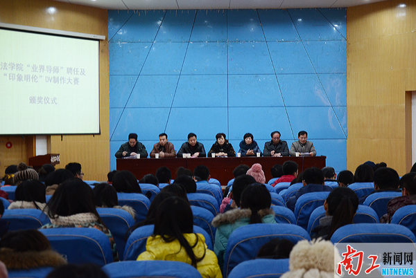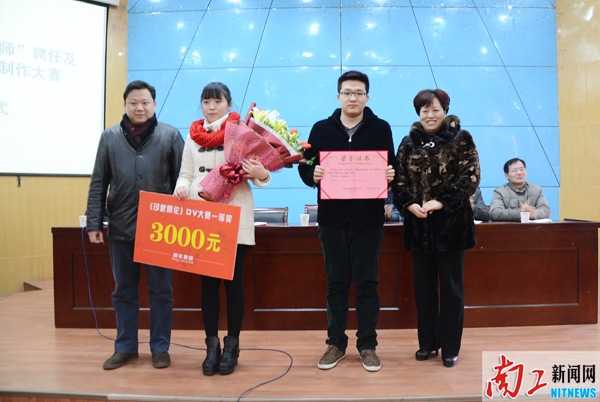本网讯(学生记者∕王彦超)文法学院“业界导师”聘任及“印象明伦”DV制作大赛颁奖仪式1月4日在图书馆报告厅举行。副校长刘荣英,南阳市明伦房地产董事长蔡浩出席仪式并为获奖选手颁奖。文法学院领导及编导专业师生参加仪式。