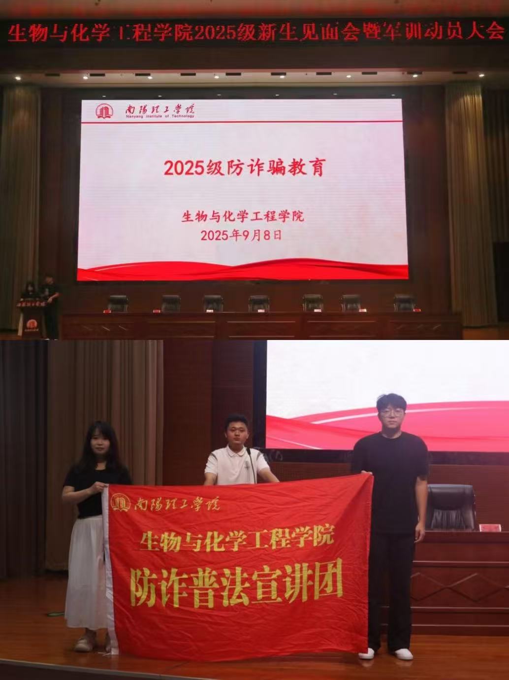 9月8日,一场“干货满满”的新生防诈骗教育活动在第三报告厅举行。活动由生物与化学工程学院防诈普法宣讲团主讲,党委书记李冉、团学办负责老师和新生辅导员出席,2025级全体新生参加。