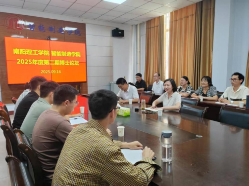 本网讯(特约记者/刘峰)9月16日,南阳理工学院2025年第二期暨智能制造学院第五届博士论坛在智能制造学院一楼会议室召开。此次论坛以“以交叉创新为驱动,探索有组织科研新范式”为主题,论坛由副院长刘峰主持,40余名教师参加。