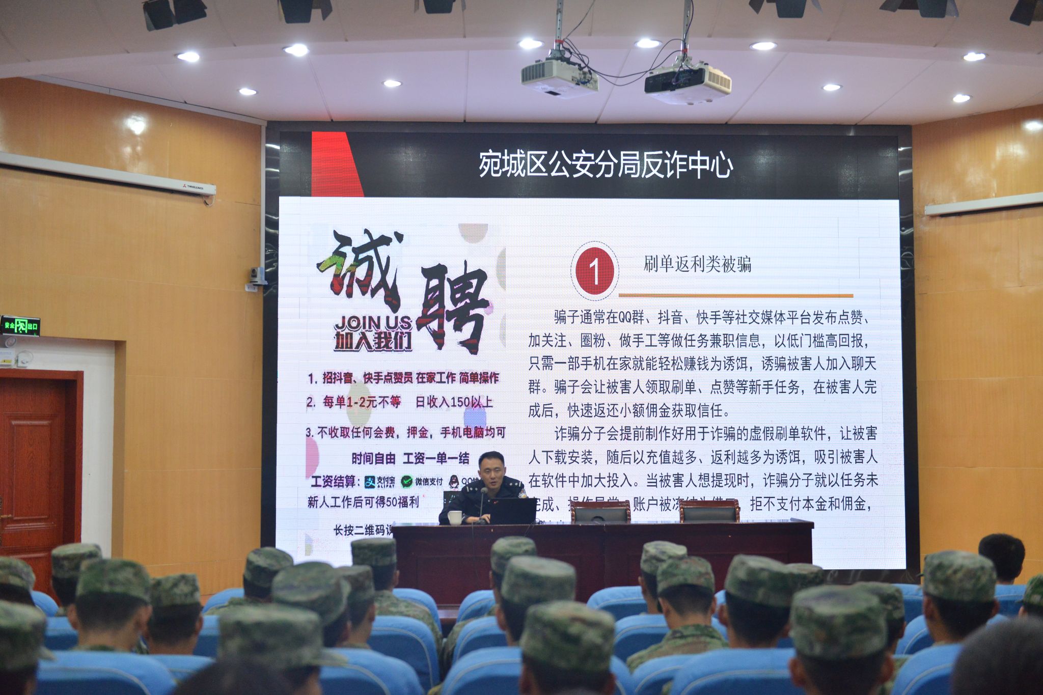 此次培训特邀请南阳市公安局宛城分局反诈中心李乐家,以《高校诈骗典型案例与防范策略》为题,结合近年来高校诈骗案件数据,重点解析“AI换脸骗局”“游戏账号交易陷阱”“网络兼职刷单”“冒充客服”等新型诈骗手段,提出教官要在军训期间重点提醒新生“五不两要”,捂好自己的钱袋子。通过“案例剖析+互动答题”模式,构建“教官-学生”双向反诈宣传链,为新生军训期间安全教育注入专业动能。