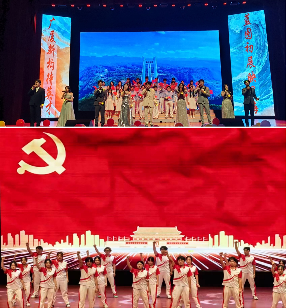 晚会尾声,情景剧《血沃中华》通过重现革命先辈的奋斗历程,将气氛推向高潮。演员们以真挚的情感与饱满的演绎,诠释了南工学子赓续红色血脉、勇担时代使命的赤子情怀。当《我爱你中国》的旋律响彻全场,全体师生起立齐声合唱,激昂的歌声中,晚会落下帷幕。